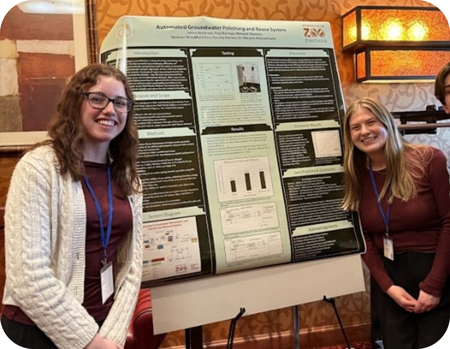 Jenna Andersen, Paul Borrego, and Mairead Shannon represented Loyola University and won 1st place with their presentation titled Brookfield Zoo Automated Groundwater Polishing and Reuse.